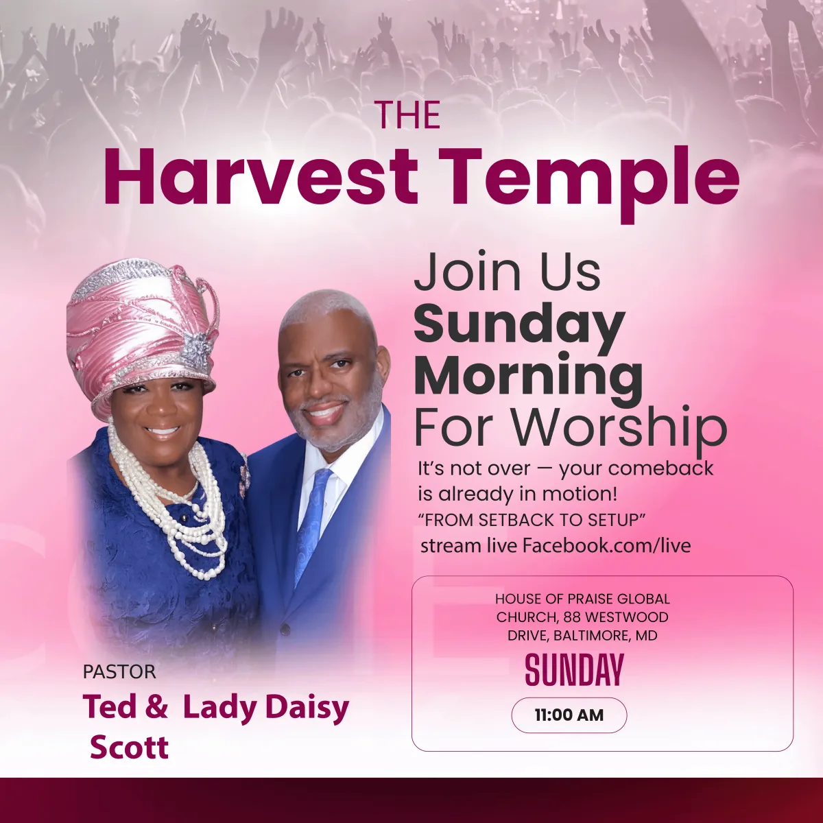 Prayer with Daisy Scott Ministries is a powerful and uplifting experience that nurtures spiritual growth, strengthens faith, and brings individuals closer to God. Through heartfelt prayer and guidance, the ministry creates a supportive environment where lives are encouraged, hope is renewed, and spiritual transformation is inspired.